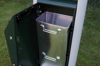 - Darüber hinaus gibt es das Duo-Beutelspendersystem: einen Hundekotbeutelspender mit Mülleimer: Im oberen Teil befindet sich der Spender für die Gassitüten und unten ist ein Abfalleimer mit Deckel angebracht. Diese Variante enthält 240 Kotbeutel aus Papier und besteht ebenfalls aus verzinktem und pulverbeschichtetem Stahl. Der Betonfuß ist inklusive, ein Sandanker optional bestellbar. Mit dieser Konstruktion ist es noch einfacher, Hundekotbeutel richtig zu entsorgen, da neben der Hundekottüte auch direkt der Mülleimer bereitsteht.